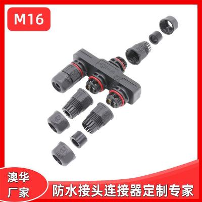 AHUA澳华现货M16-2芯公母防水接头Y型一拖二/三/四路灯模组连接器
