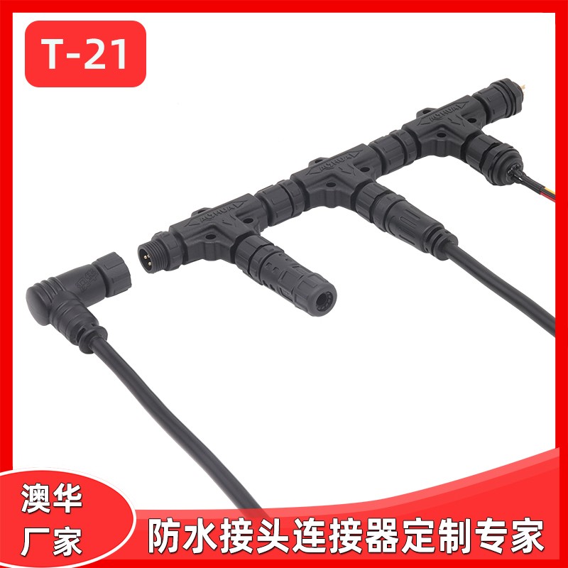 AHUA澳华三通M12尼龙迷你防水连接器公母插拔IP67接插头