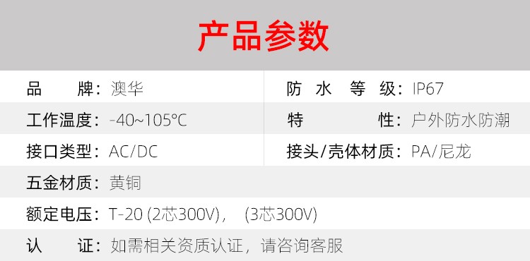 AHUA澳华公司专业生产LED防水插头连接器、路灯模组分线盒、工控防水公母接头、光伏航空插头、新能源防水电源连接线、植物生长灯连接线、畜牧养殖连接线、汽车线束。工厂自有模具制造、电线电缆押出、大型注塑、五金制造,双生产基地,可来图来样个性化定制,国家高新技术规模企业!
