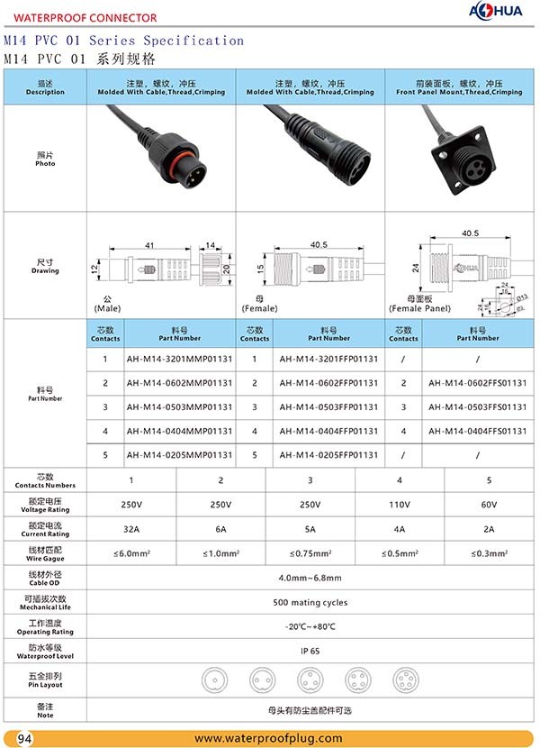 AHUA澳华公司专业生产LED防水插头连接器、路灯模组分线盒、工控防水公母接头、光伏航空插头、新能源防水电源连接线、植物生长灯连接线、畜牧养殖连接线、汽车线束。工厂自有模具制造、电线电缆押出、大型注塑、五金制造,双生产基地,可来图来样个性化定制,国家高新技术规模企业!